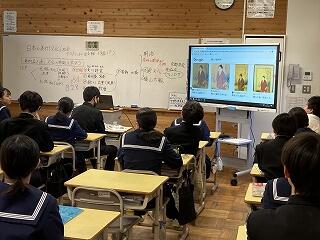 1・2年生は本日も、元気に登校し、集中して学習に取り組む姿が各学級でみられました。本日は、1年3組4時間目社会の授業の様子を紹介します。
