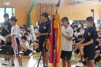 本日は終業式でした。まず,終業式前に表彰を行いました。終業式では,各学年の代表者が,全校生徒の前で1学期の反省や2学期に頑張りたいことを発表することができました。午後は,吹奏楽部による演奏を行いました。いよいよ21日がコンクールです。当日も素晴らしい演奏を楽しみにしています。その後,生徒たちに通知表を渡しました。成績を見て,一喜一憂していました。夏休みを有効的に活用して,学習の振り返りをしましょう。明日からは、夏休みです。規則正しい生活を送るとともに事故や怪我のないように元気いっぱい過ごしてください。