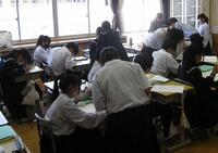 2組は国語の授業で、和歌の作者へのメッセージを考えていました。さすが3年生!プリントへの書き込みも内容濃く充実しています。