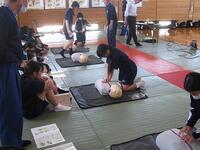 武道場では、昨日に引き続き、1年生の救命講習が行われました。グループのメンバーで協力し、役割を交代しながら、声をかけ合って取り組む姿がありました。胸骨圧迫や人工呼吸など、一つ一つの動きをしっかりと行い、「救命」について真剣に考える機会となりました。