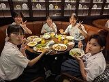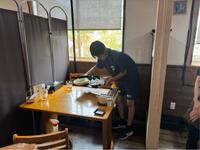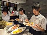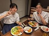 朝食の風景です。みんな元気です。おいしく、モリモリ食べてます