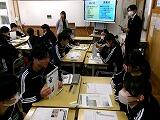 市内外から多くの先生方が参観する中での授業で、ちょっと緊張気味の生徒たち。そんな中でも、いつも通り課題に一生懸命取り組んだり、話合ったりする姿がありました。