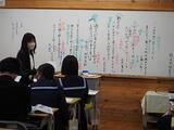 3組は英語の授業で、ディスカッションをするための表現力を高めていました。難しそうな課題にも真剣に取り組む姿がすばらしいです。
