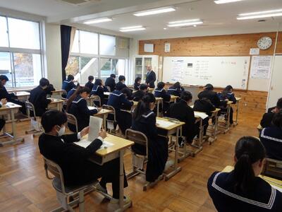 生徒たちは、ゲストティーチャーの先生の言葉に真剣に耳を傾けながら、授業に取り組みました。