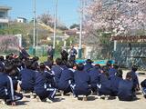 あいにくのお天気でしたが、満開の桜の中、76名の新入生を迎え、入学式が行われました。