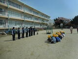 5時間目には避難訓練があり、地震の直後に校舎から火事が発生したという想定で、校庭に避難しました。